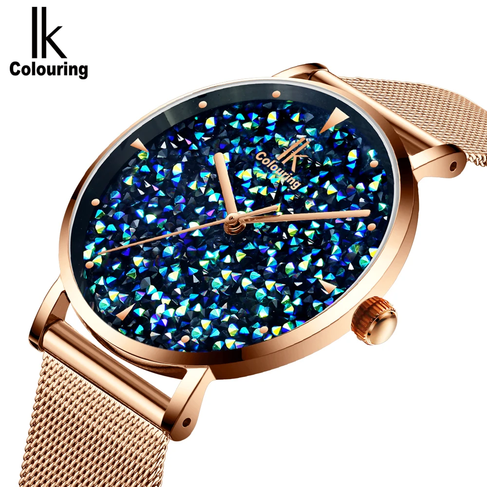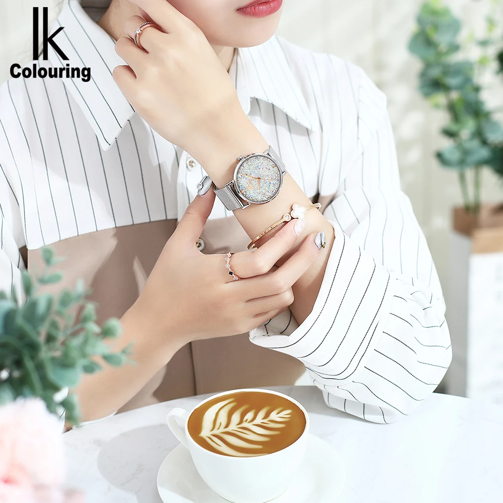 Free shipping IK Colouring Women's Watches Starry Sky Quartz Watch Wristwatch Stainless Steel Mesh Band Glitter L